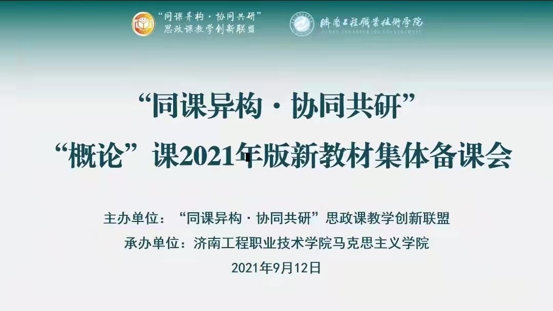 (通讯员 秦芹)9月12日上午,由华中师范大学马克思主义学院“同课异构·协同共研”思政课创新中心主办、济南工程职业技术学院马克思主义学院承办的“概论”课程2021年版新教材集体备课会通过腾讯会议线上举行。恩施职业技术学院全体思政教师参与了本次的线上集体备课会,深受启发。