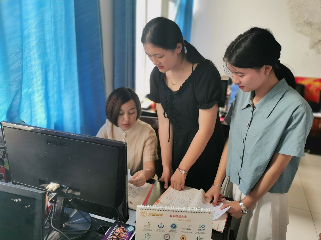 然而在成绩的背后,她所遇到的艰难险阻是难以想象的。国赛中导游英语口语环节考核的是学生作为导游在带团过程中解决游客的各种投诉。这个对学生的旅游专业知识和英语能力要求极高,然而学生的英语基础都很差,面对这个问题,她总是很有耐心,从单词入手,自己录音,让学生反复听,并一遍又一遍地询问学生有哪一处地方没有听懂,一遍又一遍地鼓励学生要不惧困难,迎难而上。她总是天还蒙蒙亮就赶往办公室准备当天需要辅导的学习资料,夜晚又常常是她的办公桌上亮着最后一盏灯火。在辅导的几个月里,她从没有节假日和周末,每当看到学生取得哪怕是一丁点的进步,她都由衷地为此高兴。而每当这些选手感到无法坚持下去而想要放弃时,她总会变成知心妈妈倾听学生内心的想法并诚恳地提出自己的看法,与他们拉拉家常,放松心情。她就是这样,严格地要求自己和她的学生们。